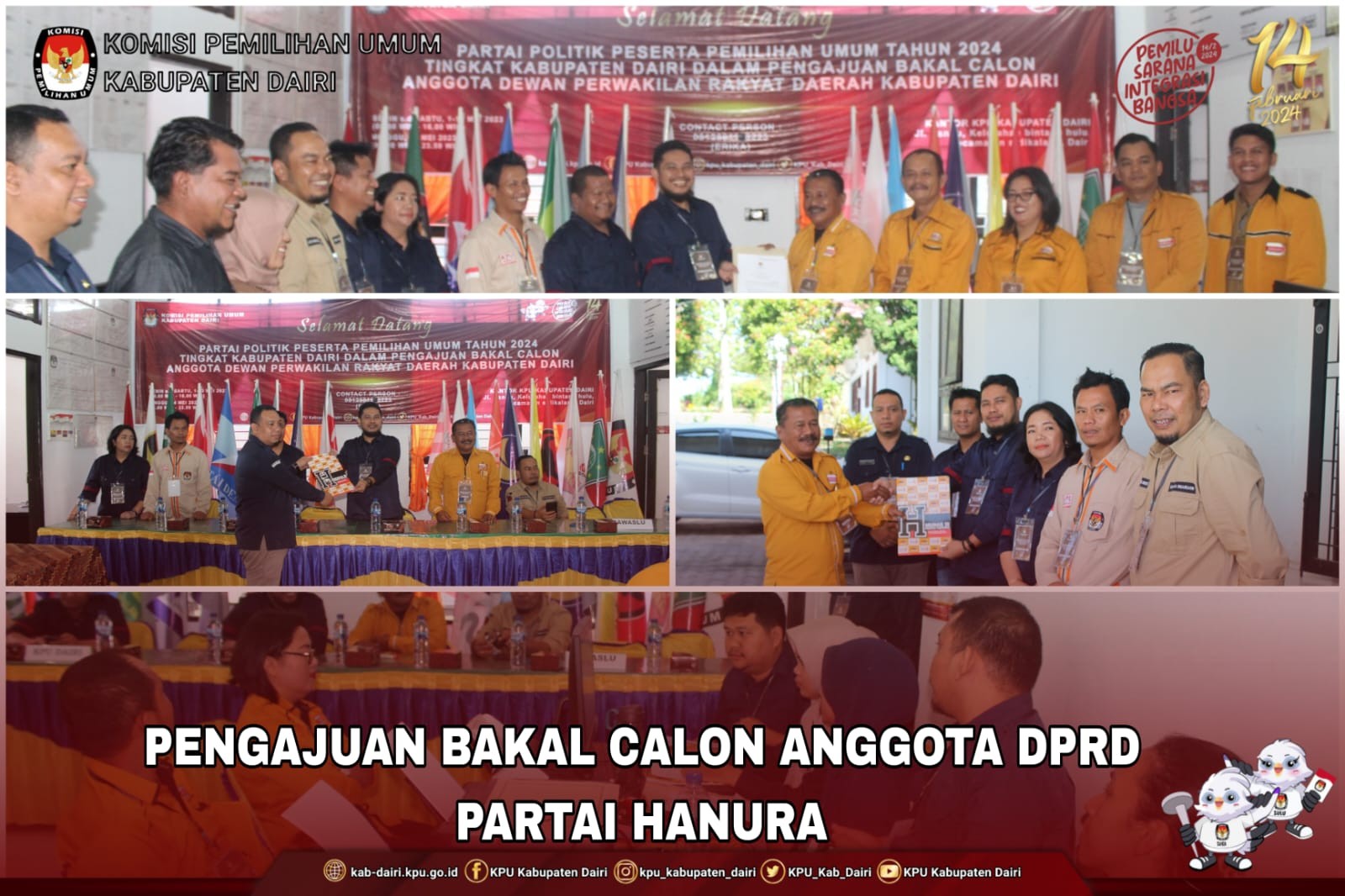 Dalam pelaksanaannya, bakal calon mengikuti prosedur penerimaan yang digunakan oleh KPU Kabupaten Dairi. Setelah diperiksa oleh tim yang telah ditugaskan, dokumen persyaratan bakal calon Anggota DPRD Kabupaten Dairi, Partai Hanura, Partai PPP, Partai PKS dan Partai PKB dinyatakan benar dan lengkap.