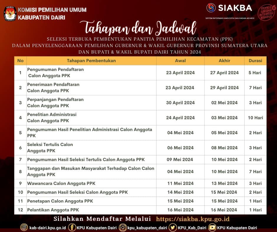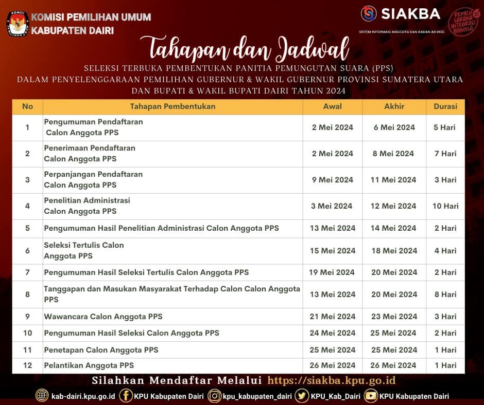 Pembentukan Penyelenggara Badan Adhoc Panitia Pemilihan Kecamatan (PPK) dan Panitia Pemungutan Suara (PPS) se-Kab. Dairi untuk Pemilihan Gubernur dan Wakil Gubernur Provinsi Sumatera Utara serta Bupati dan Wakil Bupati di Kabupaten Dairi tahun 2024.