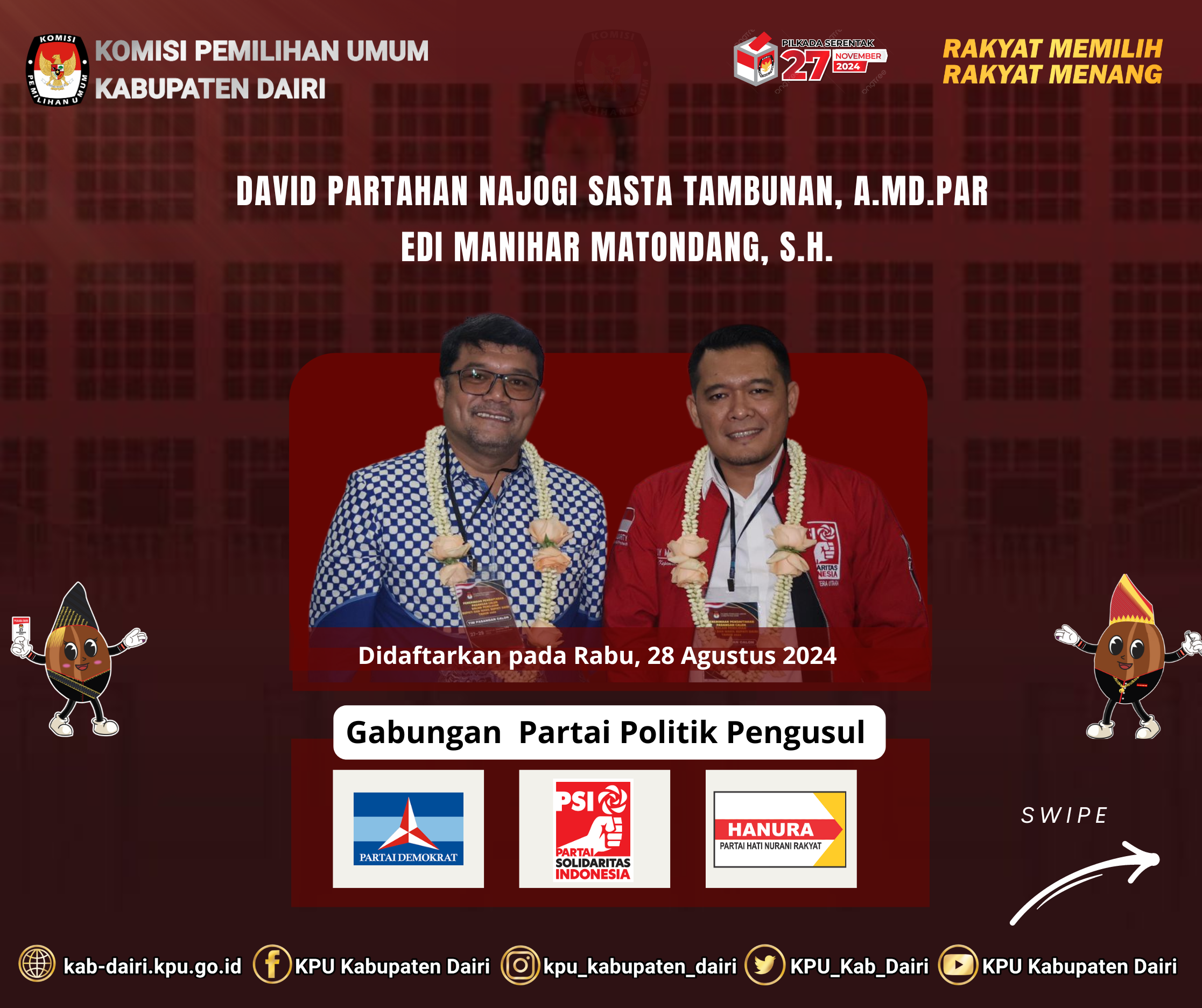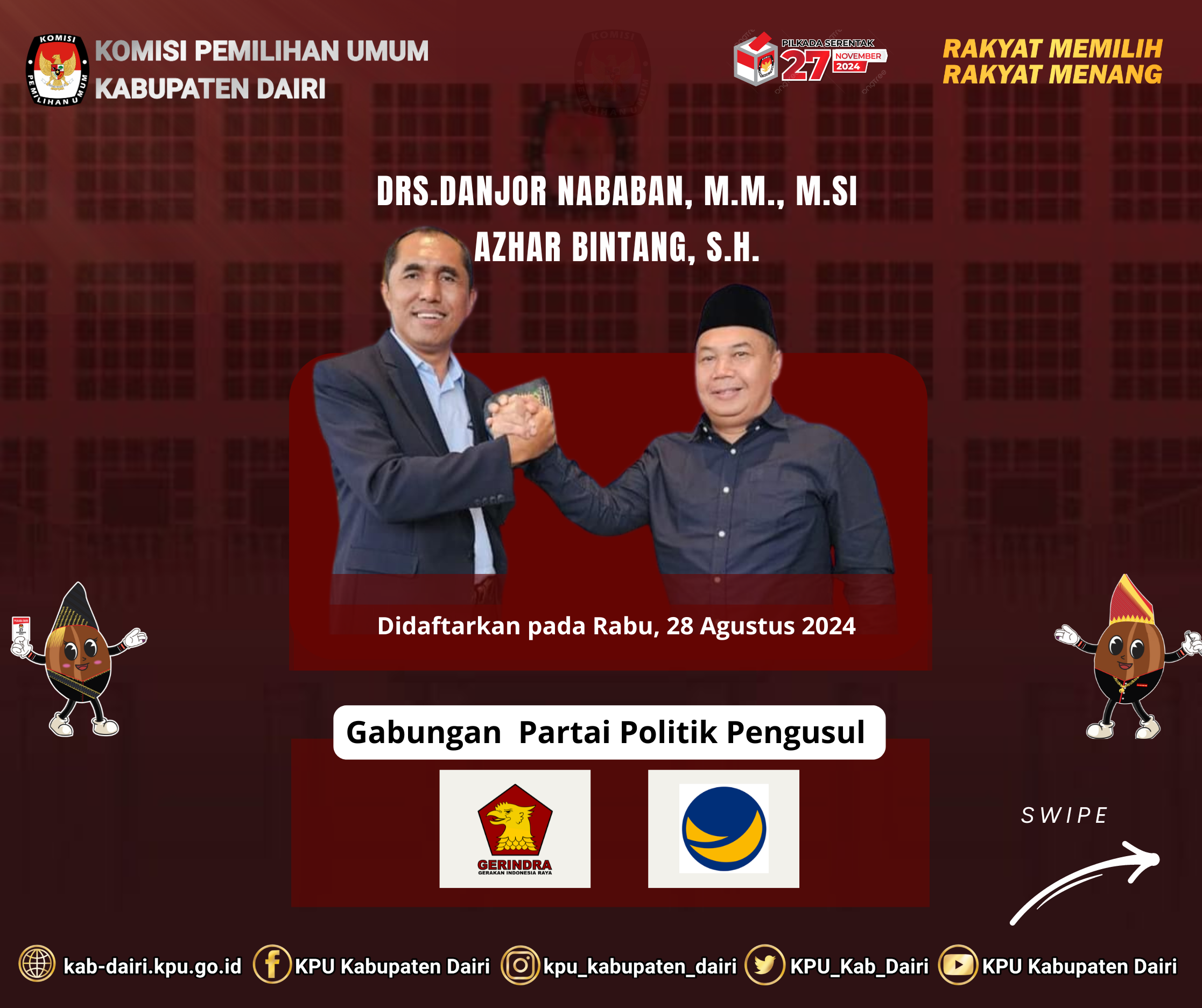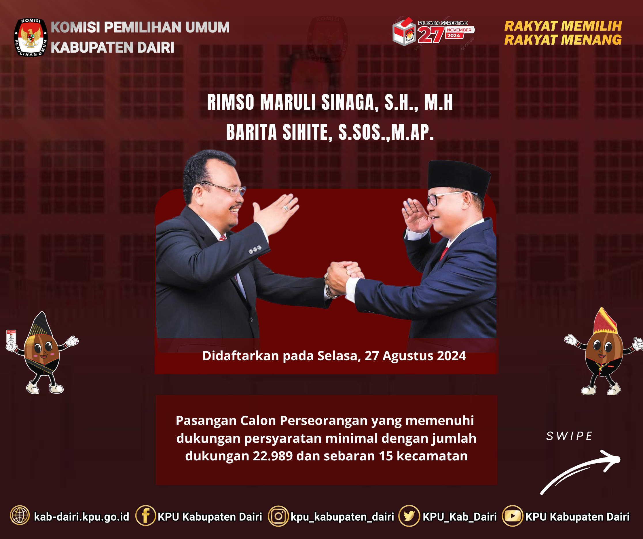 #TemanPemilih, Berikut Update 5 (lima) Pasangan Bakal Calon Bupati dan Wakil Bupati di Pilkada Dairi 2024.