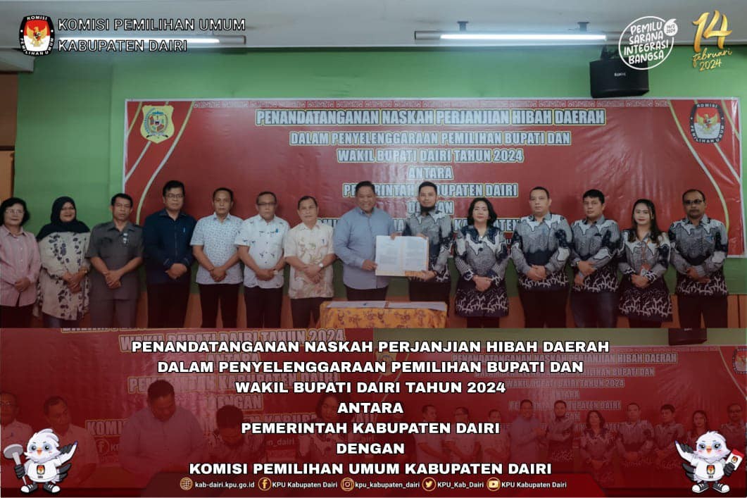 Bertempat di ruang rapat Kantor Bupati Dairi, telah dilakukan penandantangan Naskah Perjanjian Hibah Daerah (NPHD) untuk membiayai tahapan Pemilihan Bupati dan Wakil Bupati Dairi tahun 2024.