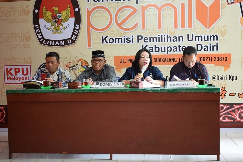 Rapat Koordinasi tentang Pelaksanaan dan Penyusunan Jadwal Kampanye Rapat Umum pada Pemilu Tahun 2019, Kamis (21/03/2019) dihadiri Ketua dan Anggota KPU Kab. Dairi, Ketua Bawaslu Kab. Dairi, Kepolisian Resor Dairi, Satpol PP Kabupaten Dairi, tim kampanye pasangan calon presiden dan wakil presiden serta pengurus partai politik peserta pemilu 2019.