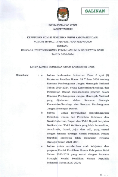 RENSTRA KPU KABUPATEN DAIRI dapat diunduh di link berikut :
